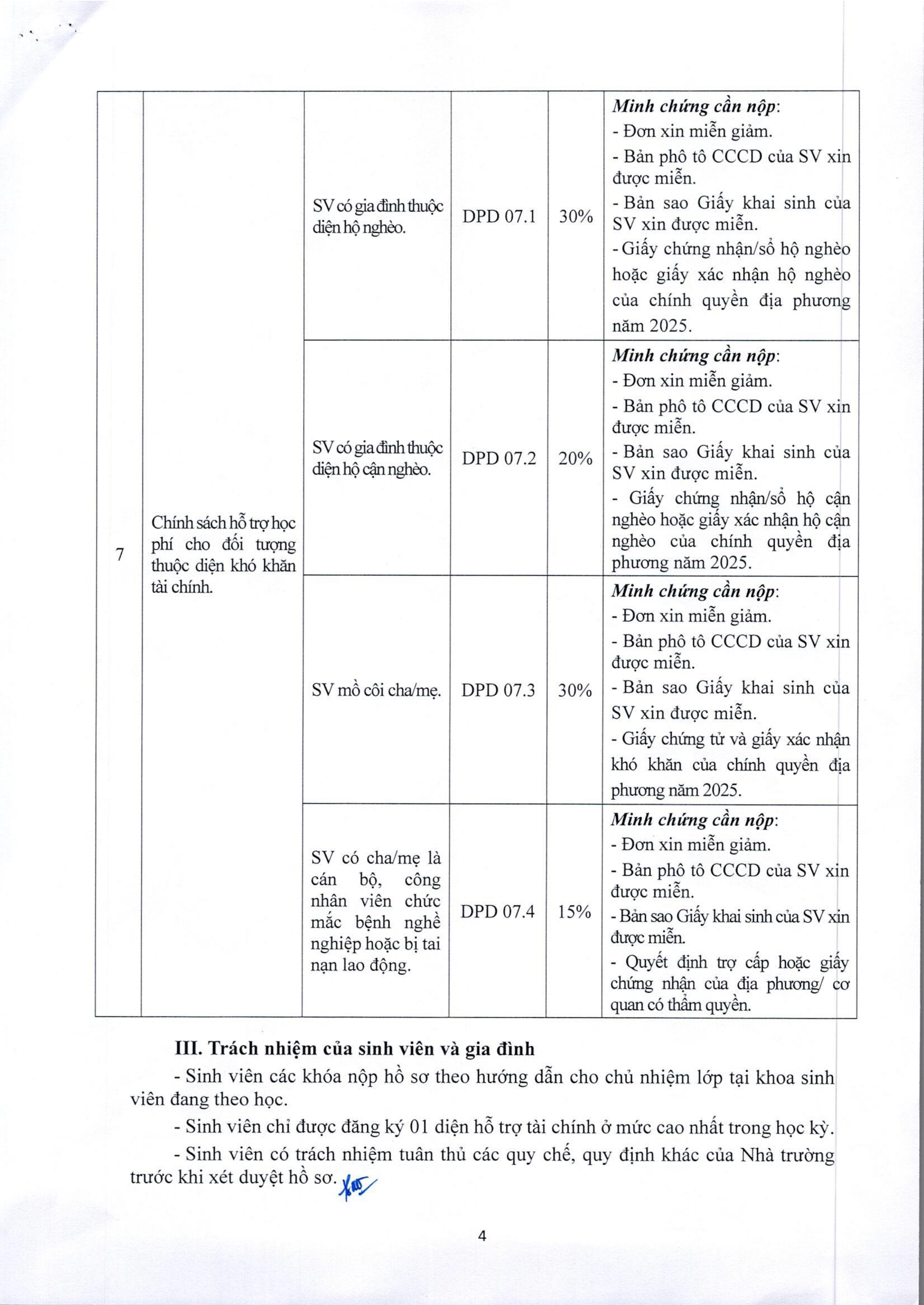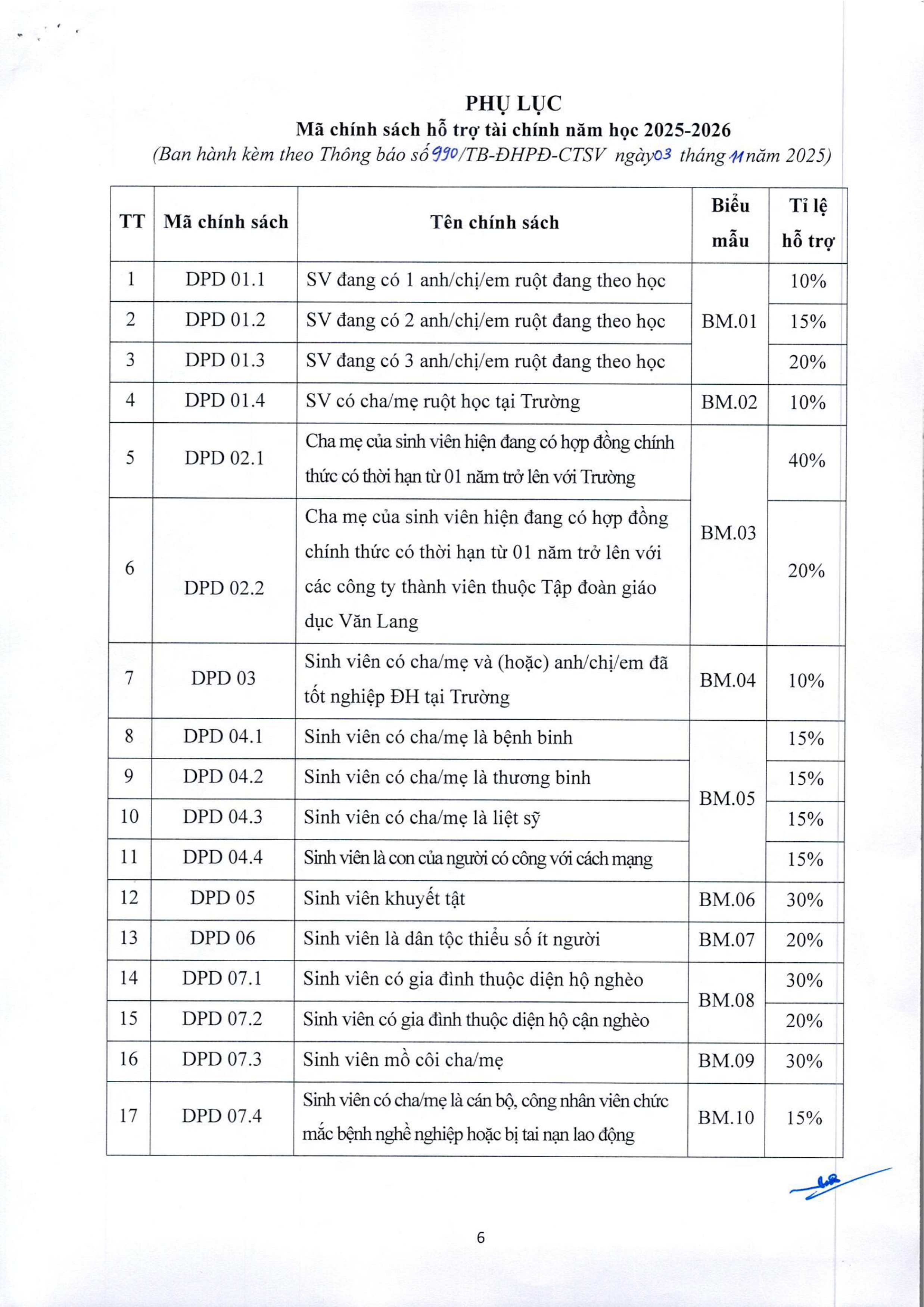 Mức hỗ trợ cao nhất: 40% học phí. Các bạn SV nhớ kiểm tra các diện hỗ trợ (hộ nghèo, khuyết tật, gia đình có công...) và hoàn thiện hồ sơ gửi về Chủ nhiệm lớp để được xét duyệt nhé.